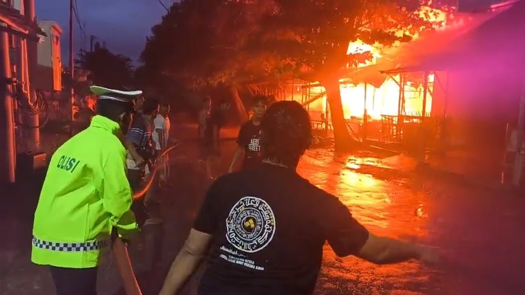 Menurut Kapolres, bangunan yang terbakar terdiri dari kios semi permanen dan permanen dengan material bangunan yang sebagian besar terbuat dari kayu, sehingga api cepat merambat.