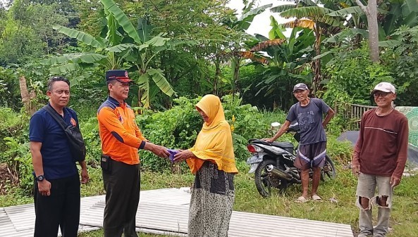 BPBD Pemalang menyerahkan bantuan kepada warga terdampak angin kencang di Desa Tambakrejo, Sabtu (10/1/2026). Foto: Istimewa