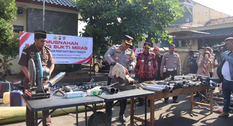 Dari hasil operasi tersebut, Polres Pemalang memusnahkan sebanyak 1.980 botol miras dari berbagai merek serta 75 knalpot brong. Pemusnahan dilakukan untuk memastikan barang bukti tidak dapat digunakan kembali.