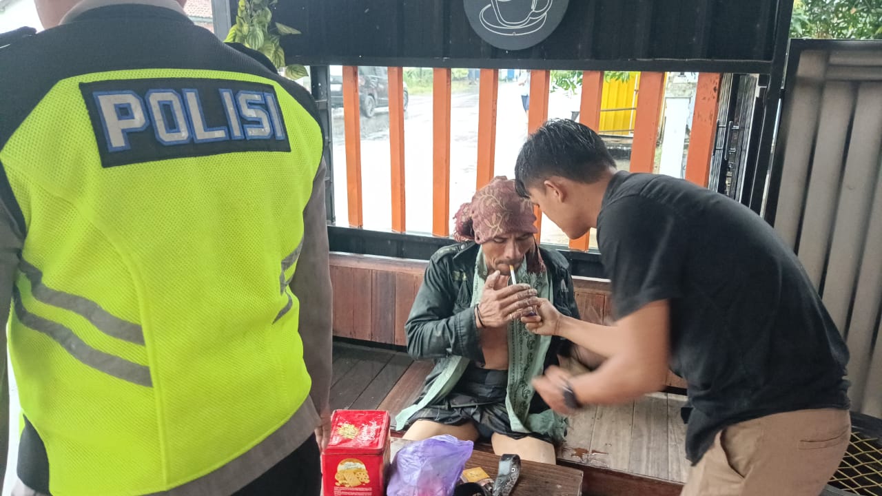 Pria diduga ODGJ membawa parang diamankan polisi setelah sempat bikin warga panik, Rabu (22/4/2026). Foto: Istimewa
